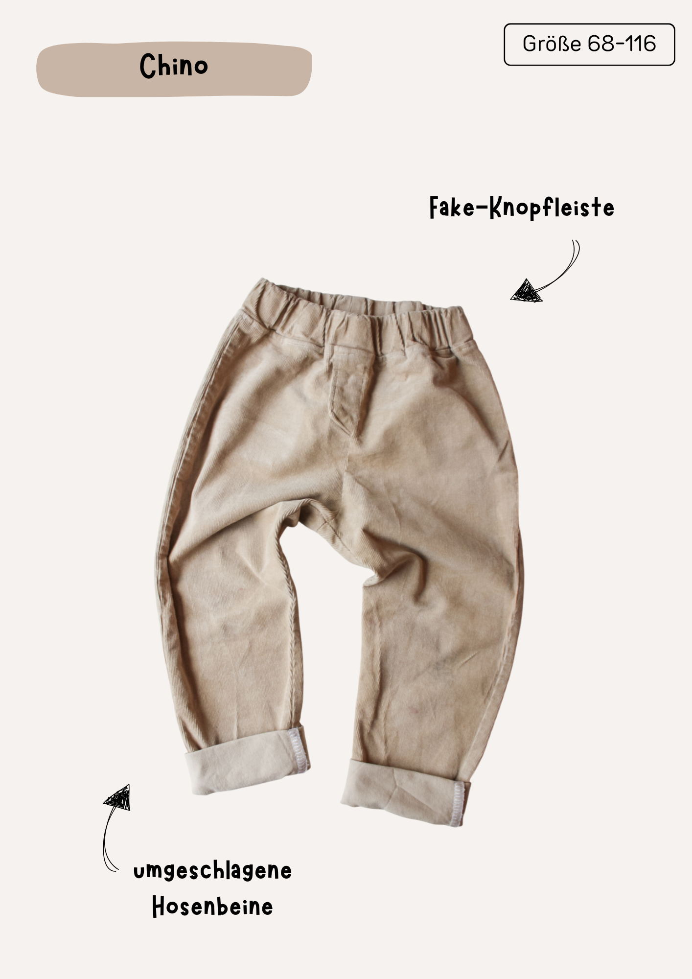 Die CHINO ist eine stylische Hose im klassischen Chino-Stil, die in zwei Varianten erhältlich ist. Die Slimfit-Version ist an den Oberschenkeln und zum Knöchel hin schmaler geschnitten und liegt enger an, was einen schlanken, modernen Look erzeugt. Die Regularfit-Version verläuft gerade und bietet mehr Beinfreiheit, was für einen klassischen und bequemen Stil sorgt. Beide Varianten zeichnen sich durch umgeschlagene Hosenbeine aus, die der Hose einen zusätzlichen lässigen Touch verleihen. Eine Fake-Knopfleiste rundet das Design ab und sorgt für einen eleganten, aber entspannten Look. Welche Version du wählst, hängt davon ab, welchen Look du erzielen möchtest. Beide Varianten verfügen zudem über eine praktische Po-Tasche, die der Hose einen funktionalen und modischen Akzent verleiht.
