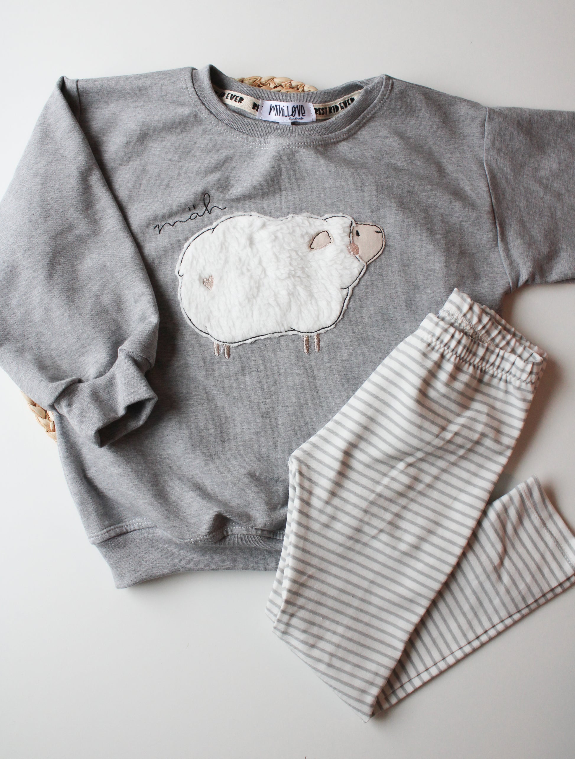 Die Leggings ist aus einem grau gestreiften weichen Jersey . Wahlweise einem Bauchbündchen (bis Größe 92) oder einem weichem Gummibund (auf den Bildern sieht man den Gummibund). Verfügbar in den Größen 56 -122.