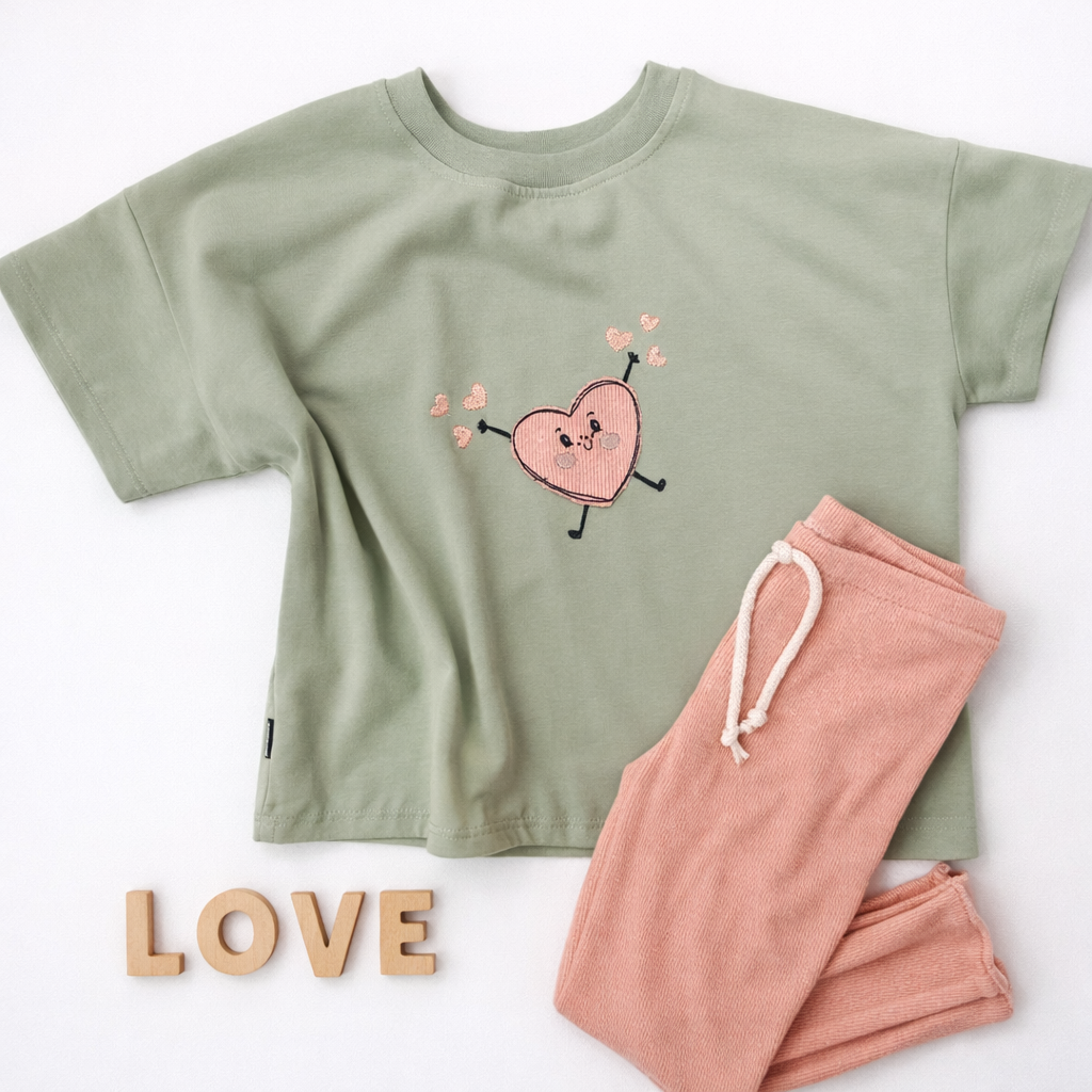 Auf dem Sweater/Shirt wird das Stickbild "Happy Hearts" aufgestickt, ihr habt dabei die Wahl zwischen zwei verschiedenen Motiven und könnt optional noch ein kleines Label hinzufügen.