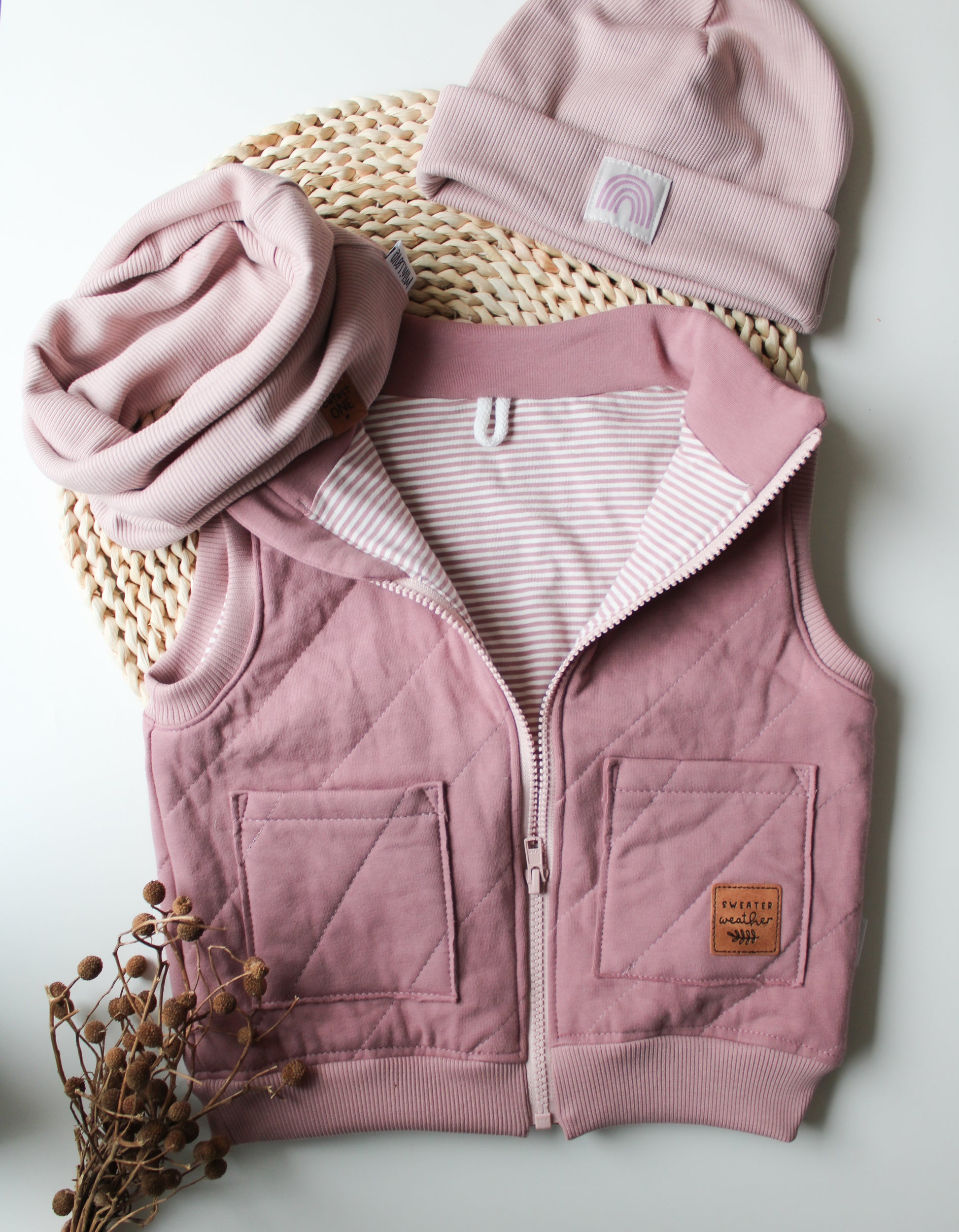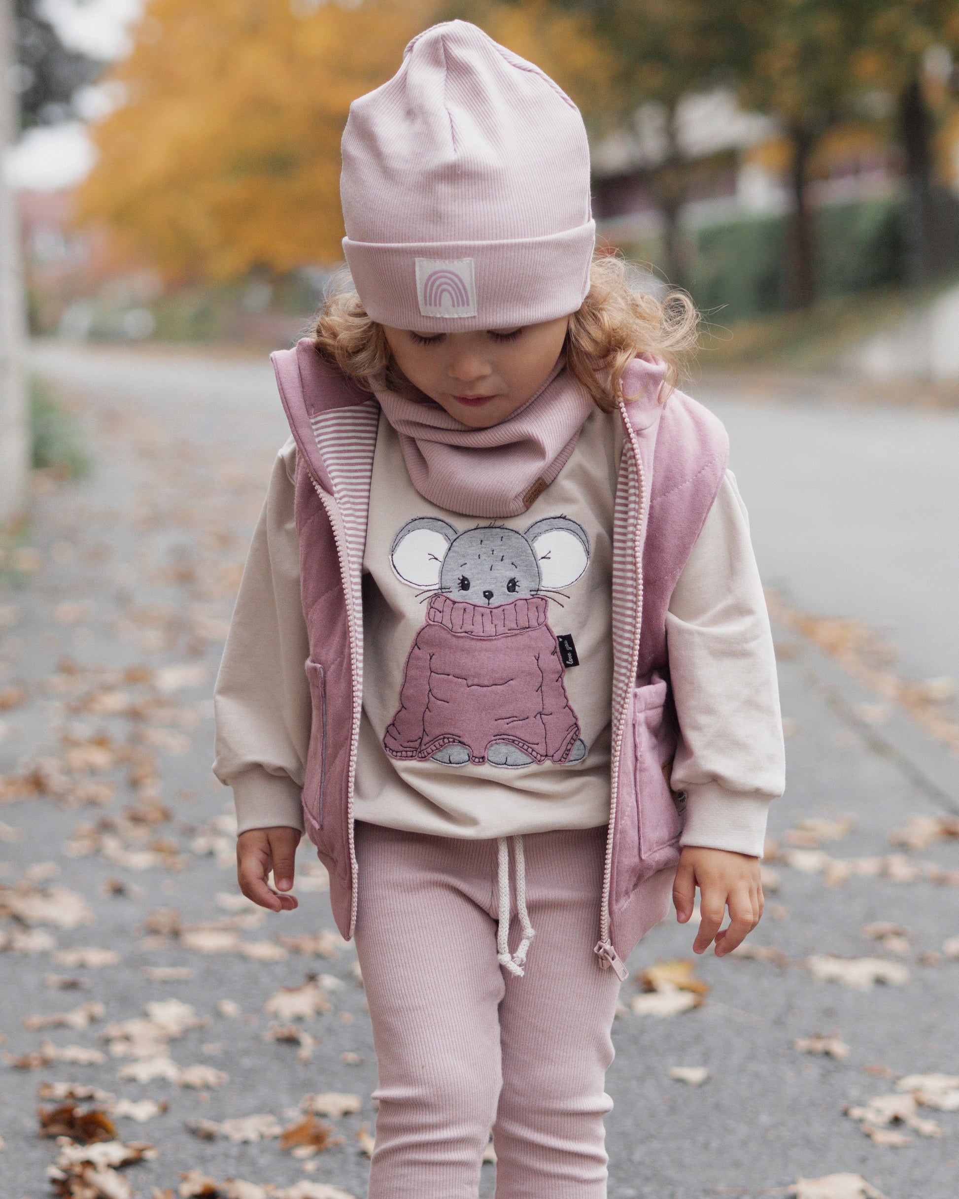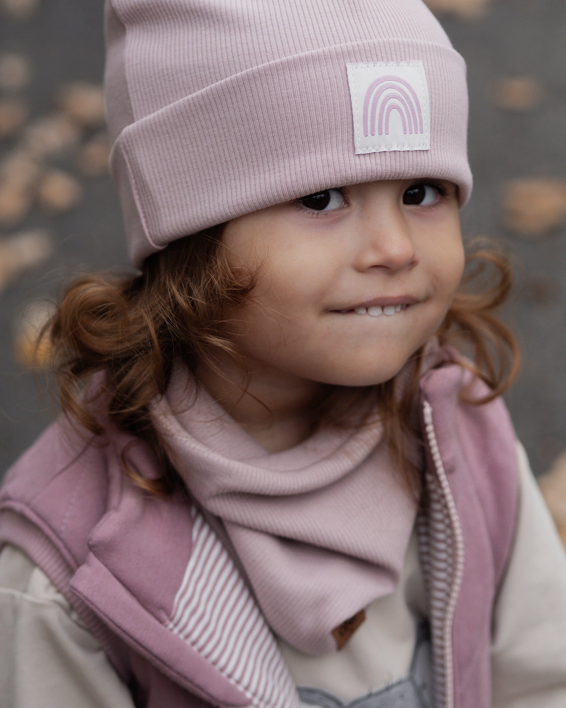 Set bestehend aus einem Hipster Beanie und einem passenden Loopschal aus hochwertigem Ribjersey in zartem Altrosa. Der feine, elastische Stoff schmiegt sich angenehm an und sorgt für einen hohen Tragekomfort – perfekt für kühlere Tage.