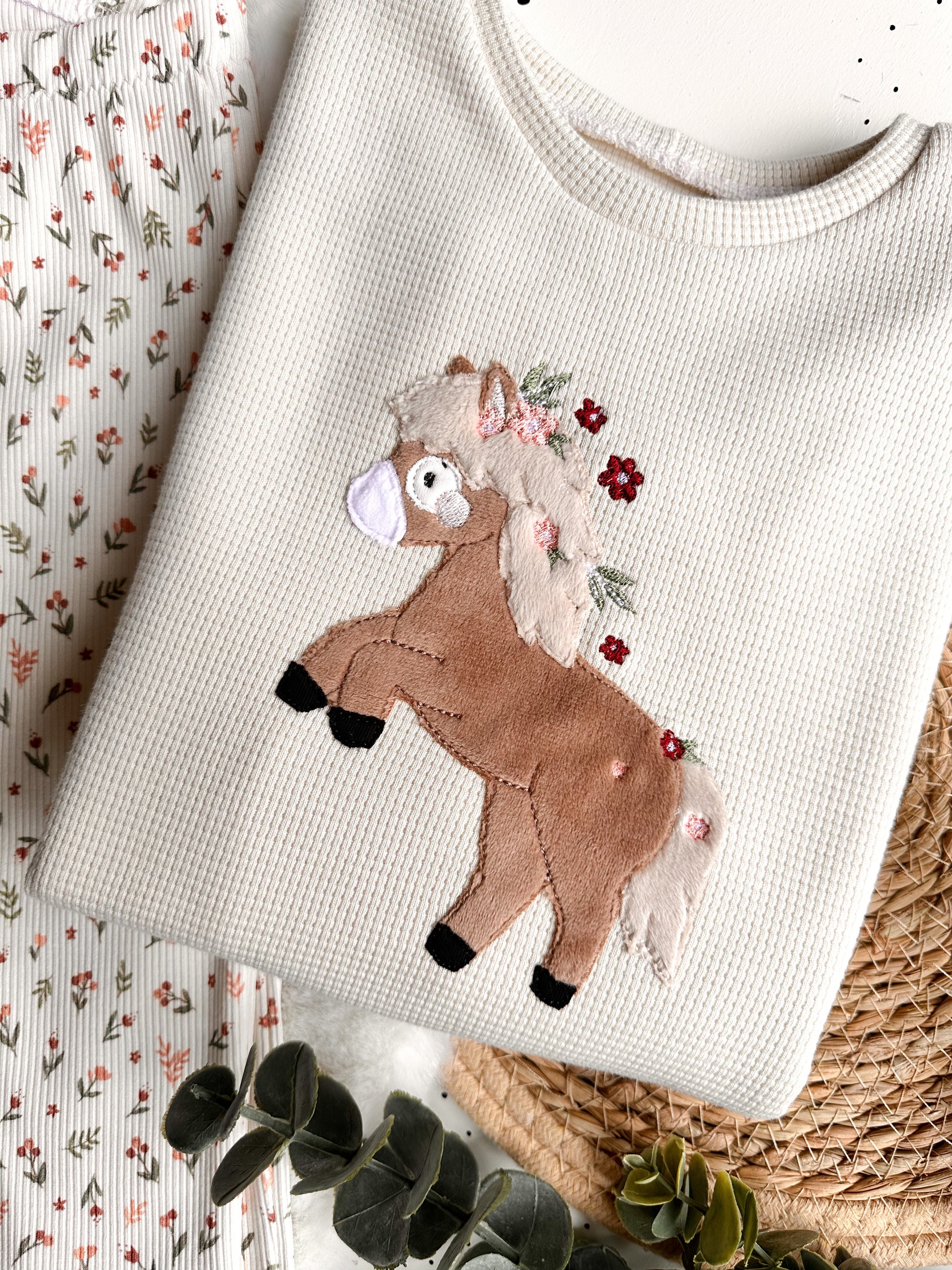 Bei diesem Produkt handelt es sich um eine digitale Stickdatei, nicht um ein physisches Produkt. Die Datei „Blumenpony“ ist ideal für kreative Stickprojekte auf Textilien wie Kinderkleidung, Taschen oder Heimtextilien. Perfekt geeignet für Hobby-Sticker und kleine Gewerbe.