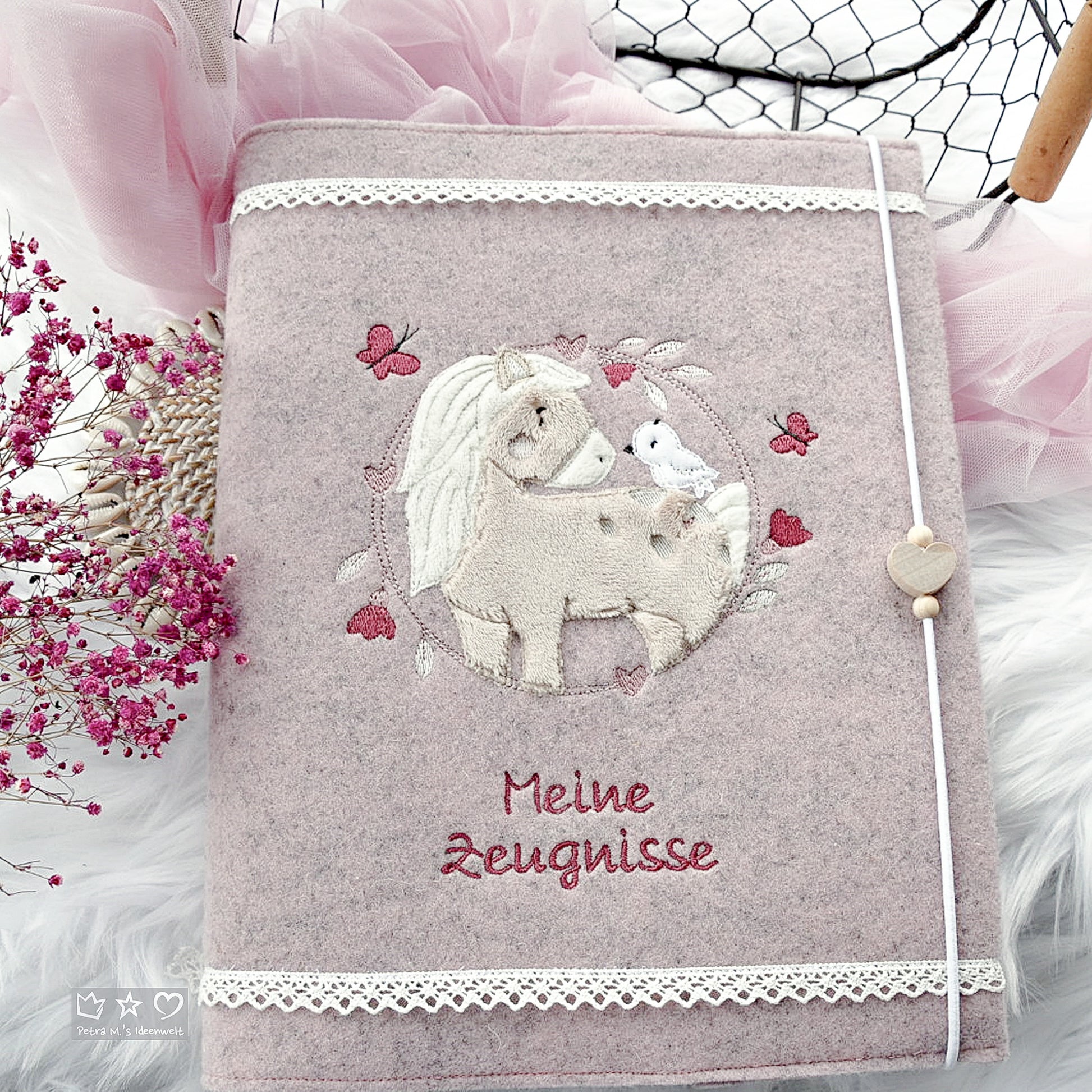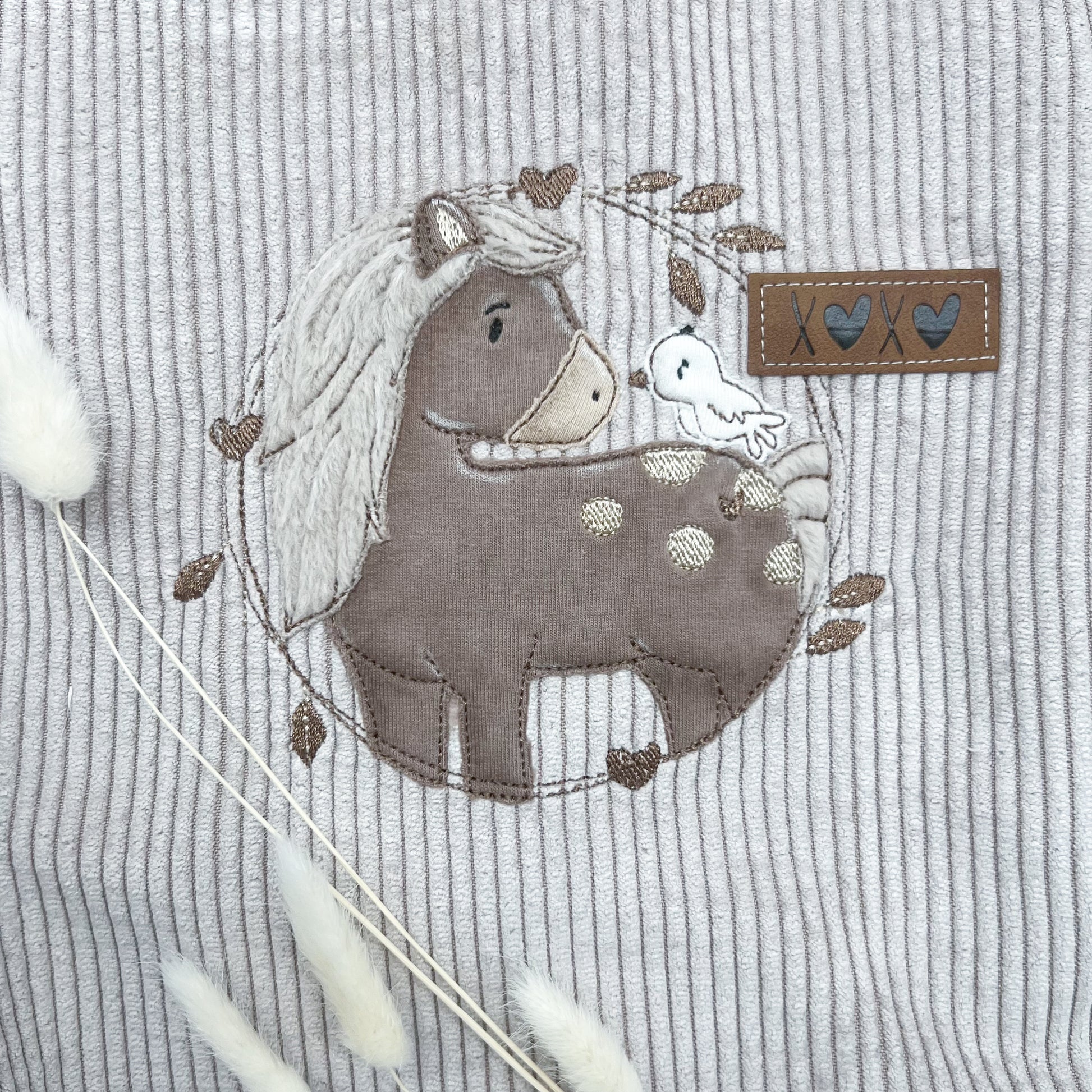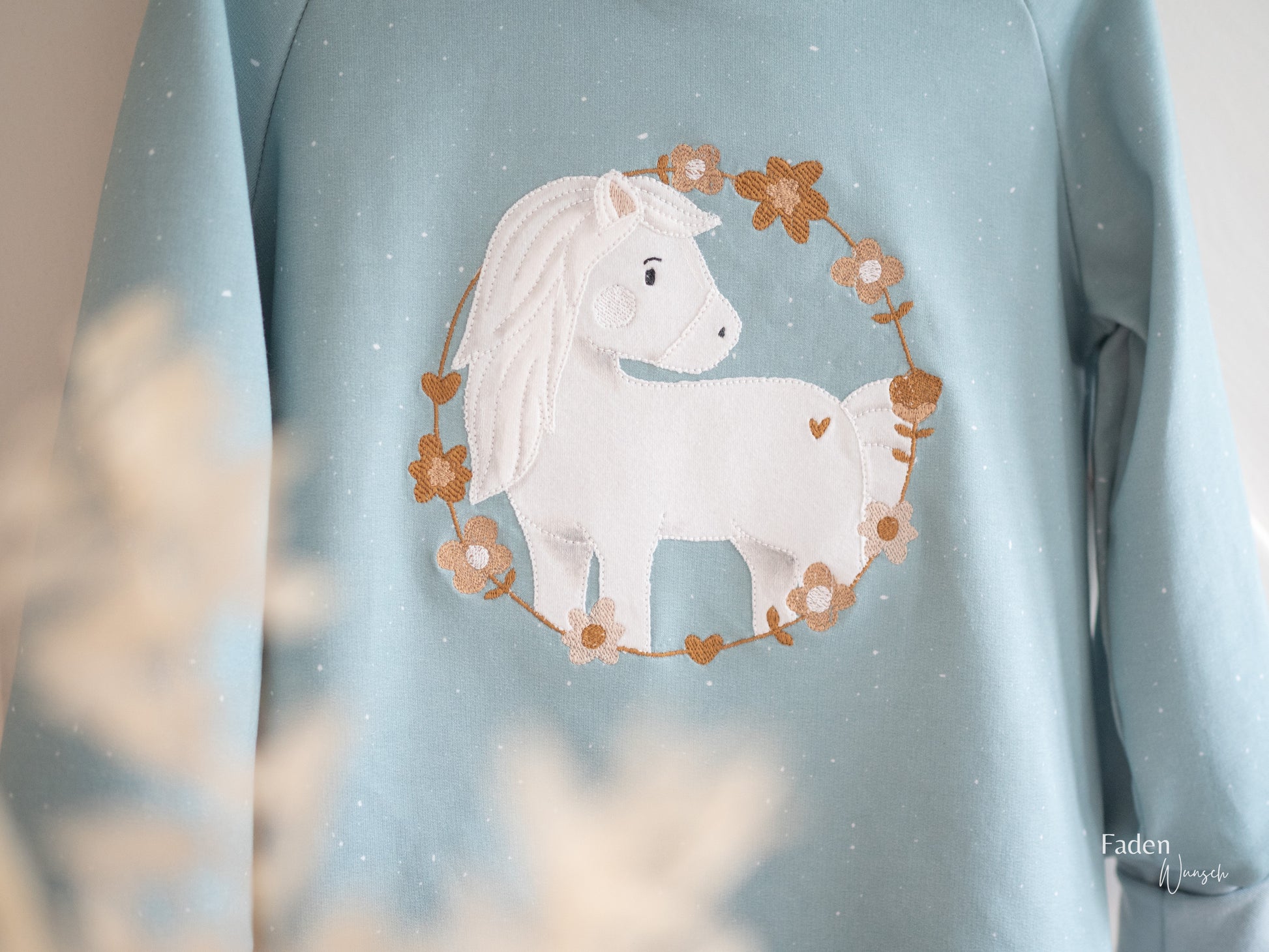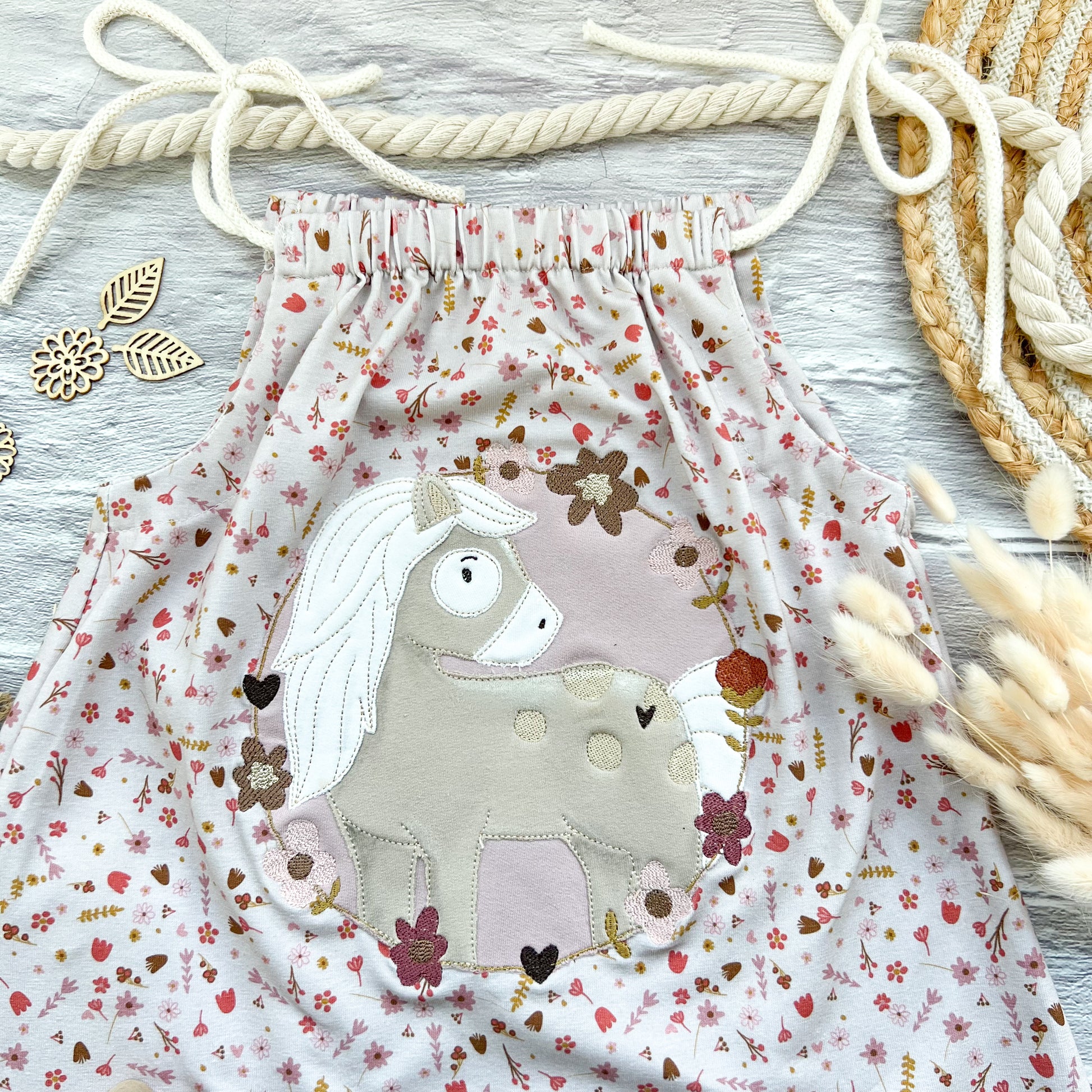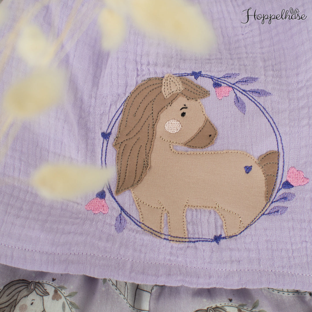 Mit dem Kauf dieser Dateien erhälst du zwei verschiedenen Varianten des Pony, einmal im Blumenkreis mit seinem kleinen Freund Piep und einmal mit Schmetterlingen.