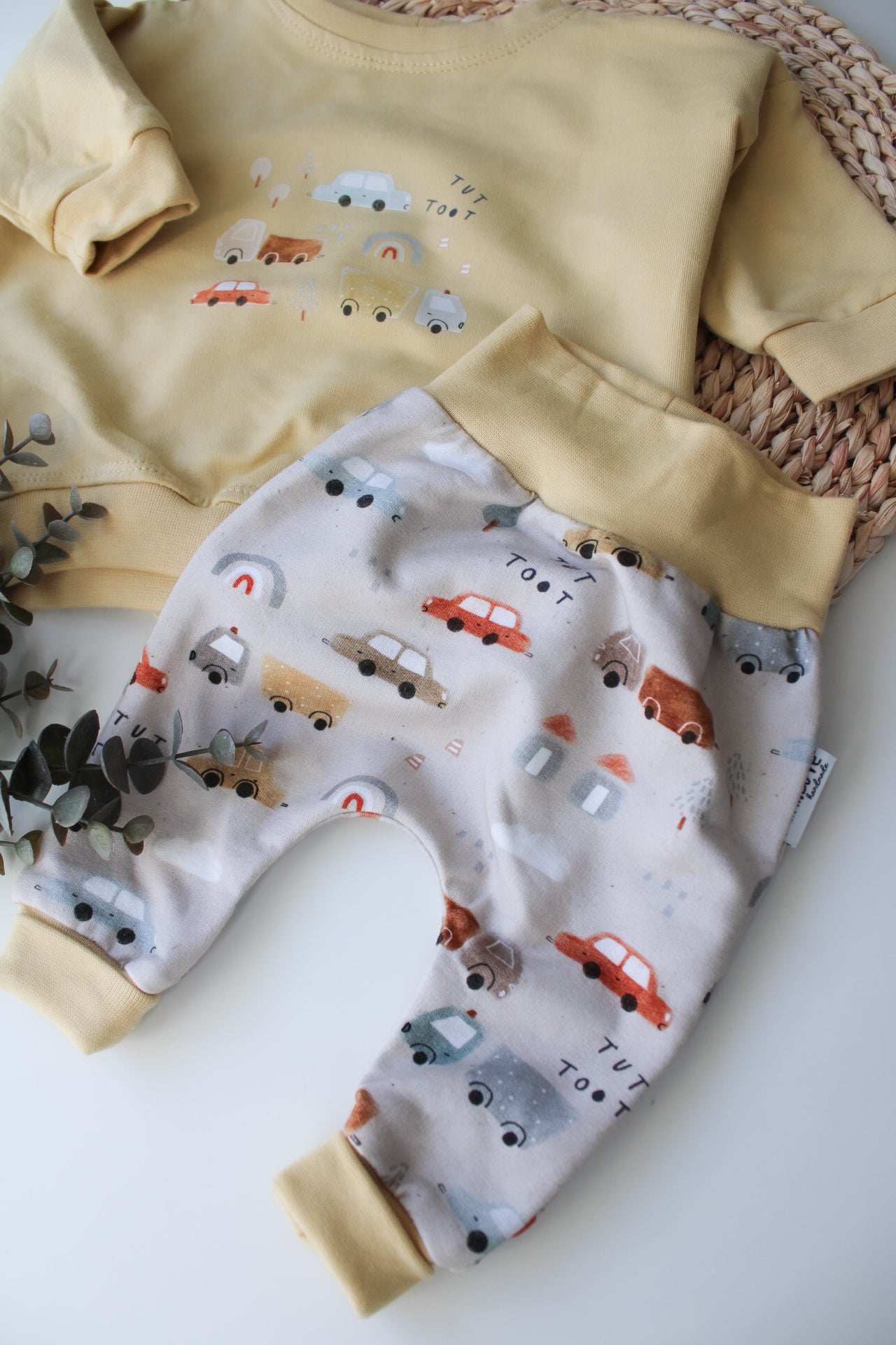 Die Baggy ist aus einem weichen French Terry mit einem Automuster und Bein- und Bauchbündchen.