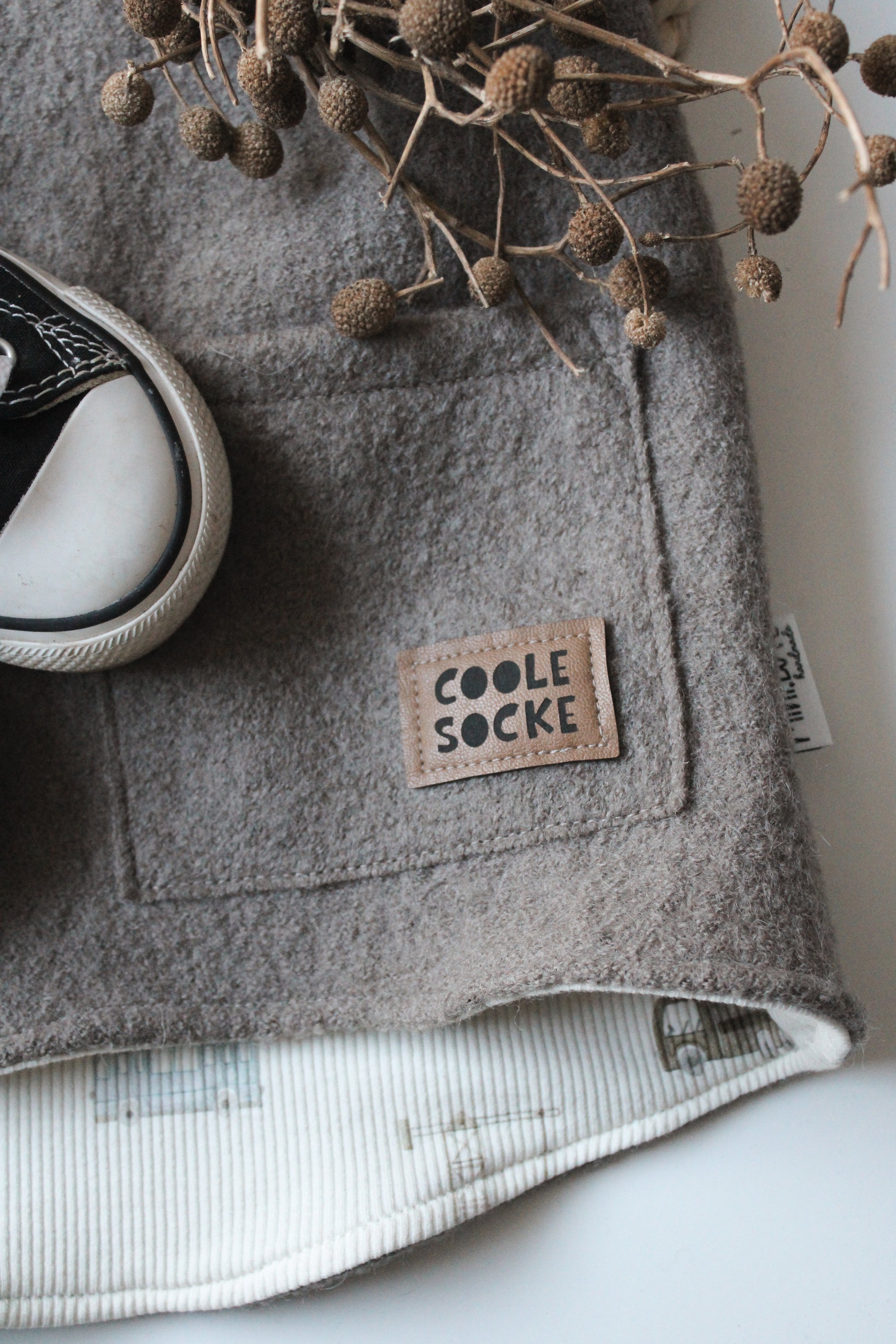 Ein besonderes Highlight ist das kleine "Coole Socke"-Label auf der Vorderseite, das der Jacke einen charmanten, individuellen Touch verleiht.